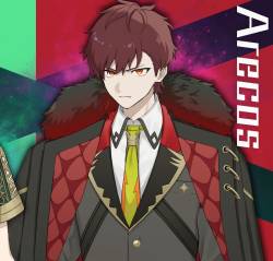 Arecos doesn't talk much and is usually described as “cool” whenever Astel brings him up[4]. Despite coming across as aloof, he is extremely loyal to Astel, and is considered trustworthy and reliable by his crewmates[5]. They ask him to run errands[6] and talk to him while he silently listens[7]. He is strong and charges in first during battle[8]. When performing in 3D, he is respectful, waving and bowing to the audience after he shows off his battle poses[9].